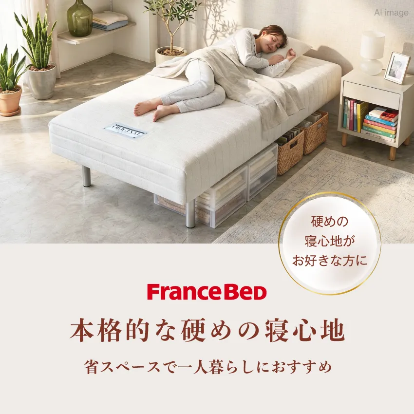 フランスベッドの本格的なかための寝心地で、省スペースに設置できる