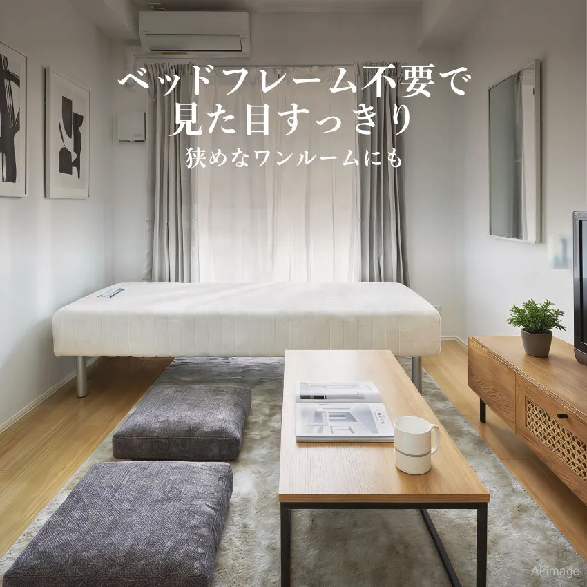 ベッドフレームが不要で、マットレスの設置面積だけで置ける脚付きマットレス。省スペースでありながらベッド下に収納スペースを確保できます。
