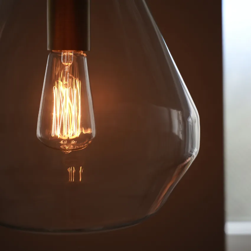 真鍮と大きなガラスに特徴あるエジソン球が印象的
