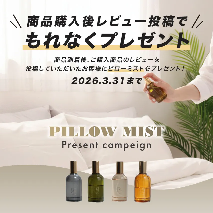 フランスベッドショップ・プラス対象商品をご購入後、到着した商品をレビュー投稿するだけでピローミストを進呈。実際の使い心地をシェアして特典もゲット。今だけのお得なチャンスをお見逃しなく。