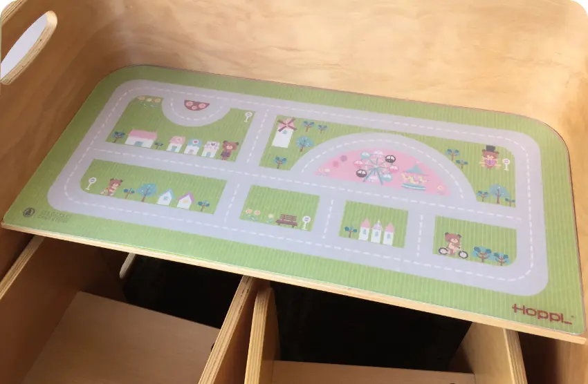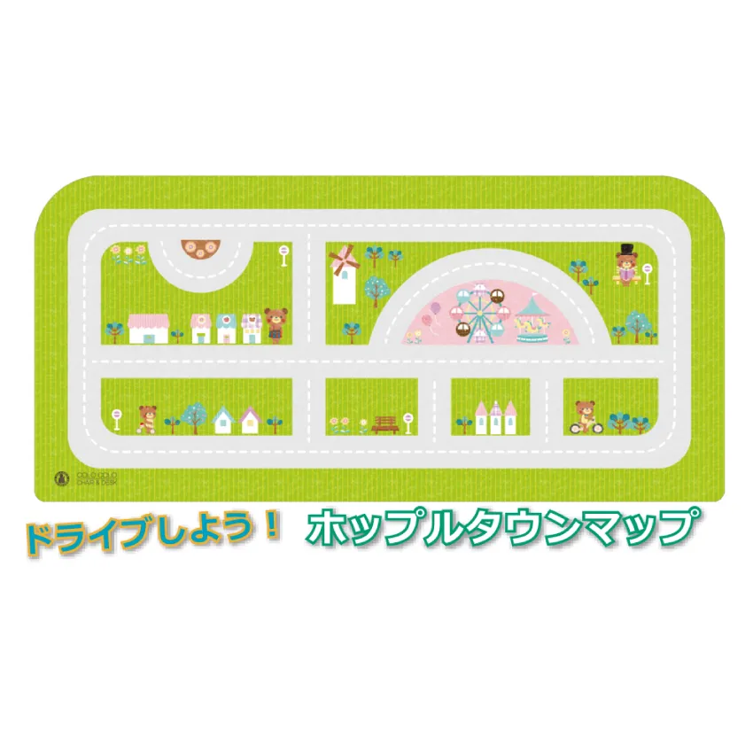 乗り物遊びが楽しくなる道路マップ。マットの上に車を走らせて遊べます。
