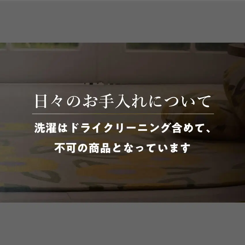 本商品、シビラインテリアマットは洗濯機での丸洗い、手洗い、ドライクリーニング不可となっています。中性洗剤で汚れた部分を布などで軽くふき、風通しの良い場所で日陰干し乾燥をしてください。多少、縮んだり、にじみが出る可能性もございますので、予めご了承ください。