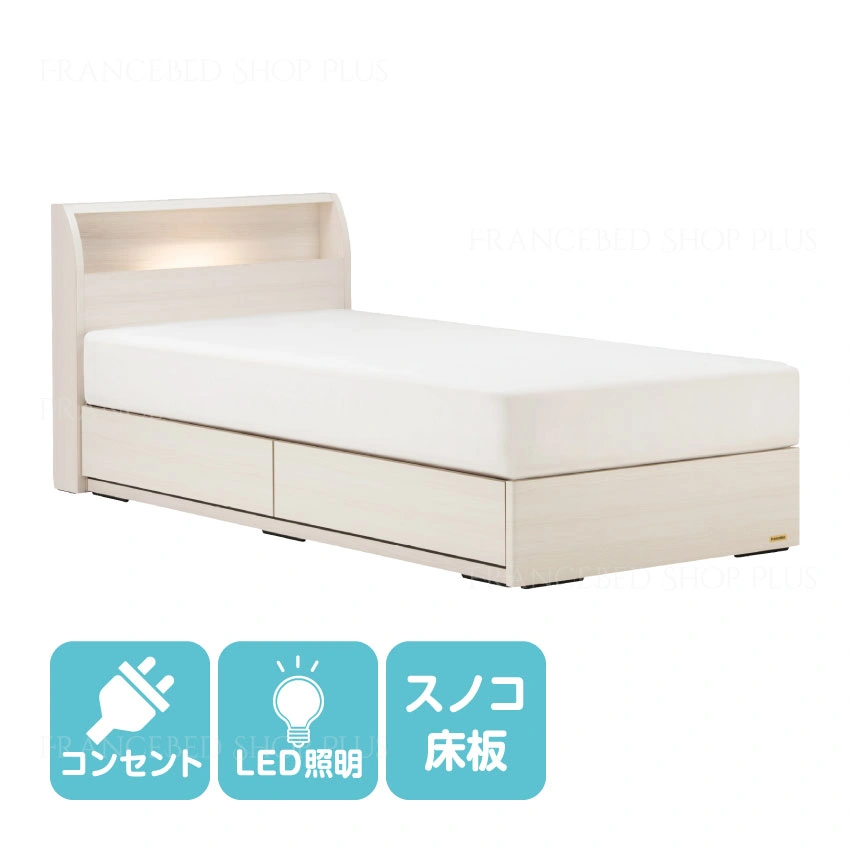 フランスベッドでは珍しい、ホワイトのベッドフレーム。白い清楚な色味はお部屋に明るさと開放感をもたらします。