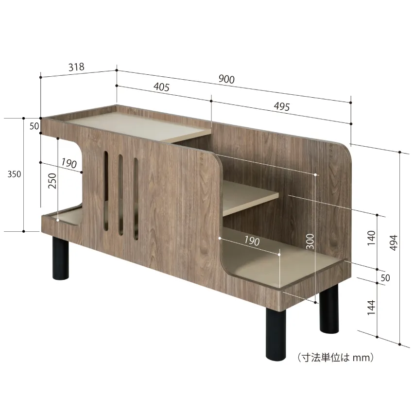 サイズ 幅900×奥行318×高さ494/350mm 梱包サイズ 幅920×奥行340×高さ390mm 重量 約13kg 主材 化粧板 特長 レッグ部取り外し可 耐荷重 約100kg ※上段の人が座れる場所についての耐荷重です。