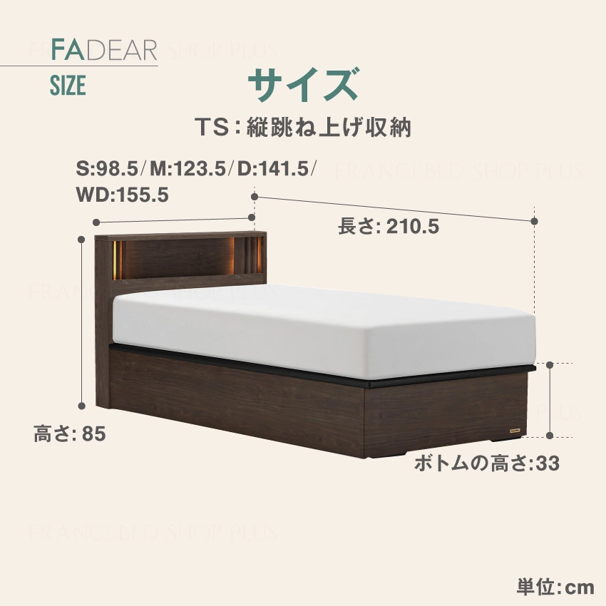 ※跳ね上げ収納タイプは構造の都合上、ステーションの上に載せる重量に制限がございます。シングル(S):37kg / セミダブル(M):46kg / ダブル(D):51kg / ワイドダブル(WD):43kg