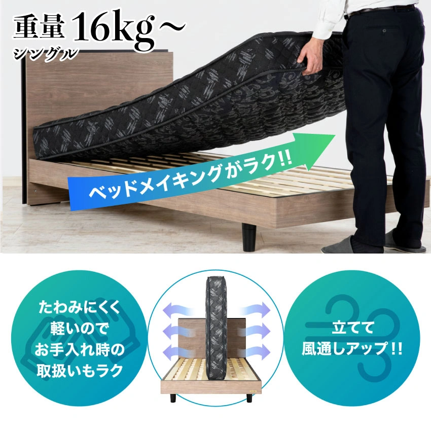 2~3週間に1回程の頻度で、壁などに立てかけてマットレスの換気を行っていただくことで、快適な寝心地が長持ちします。