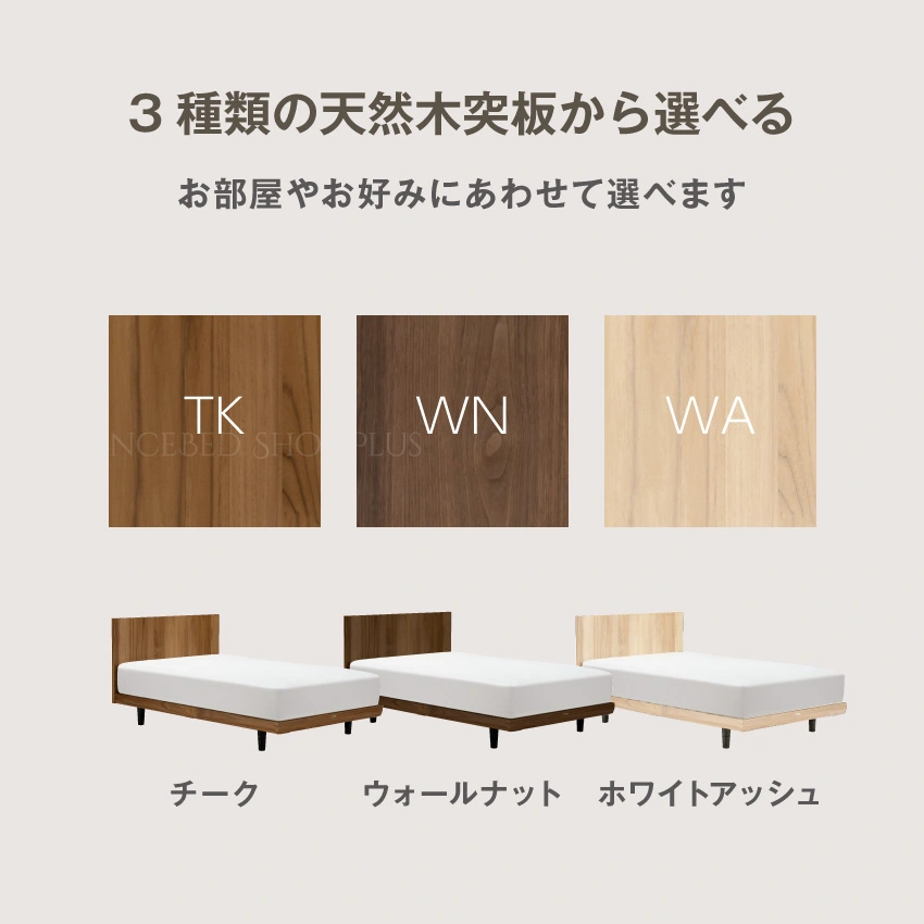 ヘッドボードは、ハイ/ローの2種類から選べます。さらに脚の高さは、それぞれ選べます。(※ヘッドボード:ローは脚を取り外してのご利用はできません)