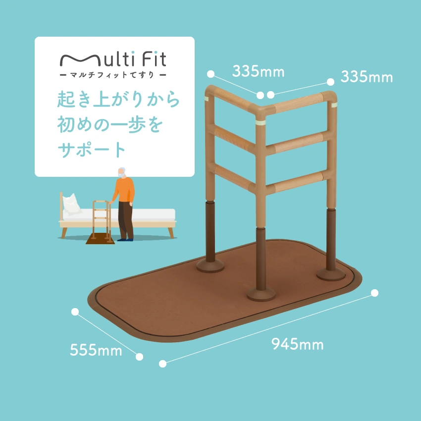 欲しいところに設置するだけで完了。ベッドや布団、ソファのそばに置いておくだけで起き上がりの支援になる手すりが、フランスベッドから登場しました。高齢者の方でもお手軽に使えます。リビングだけでなく、トイレや玄関などに置いて立ち上がりが不安な時も、マルチフィットてすりが支援してくれます。