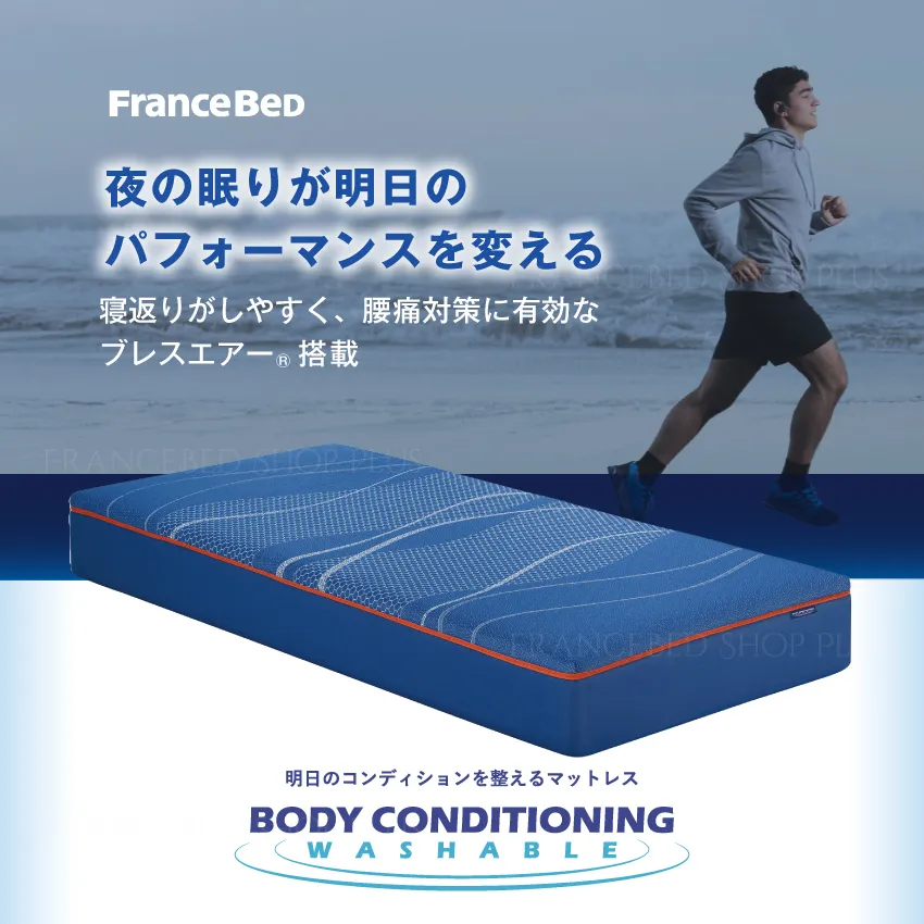 フランスベッドより、スポーツをする人のための快眠設計マットレスが登場。硬めの高反発×ブレスエアー®構造で、眠りながらリカバリー。運動後の疲労回復をサポートし、質の高い睡眠が翌日のパフォーマンスを支えます。腰が沈まず、筋肉や関節をしっかり休ませるから腰痛の軽減にも役立ちます。