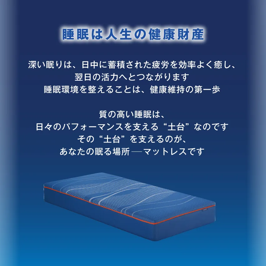 高温多湿な日本の気候や、日本人の体格・睡眠スタイルを深く理解して作られており、寝心地の良さはもちろん、耐久性や安全性の面でも高い品質を誇ります。
