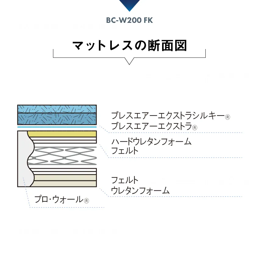 サイズ 幅97×長さ195×厚さ26cm 重量 23kg スプリング 高密度連続スプリング® 詰物 - ブレスエアーエクストラ®