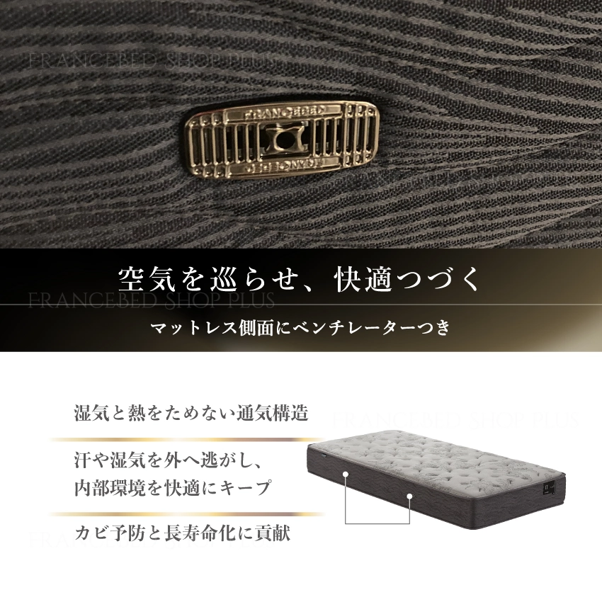 寝ている間に発生する汗や湿気をスムーズに外へ逃がし、マットレス内部を常にフレッシュな状態に保ちます。 マットレスの長寿命化にもつながる重要なパーツです。