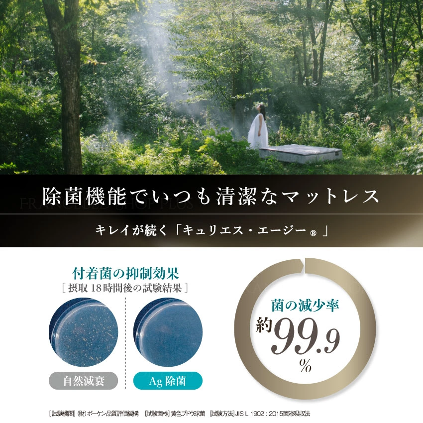 銀イオンによる除菌機能「キュリエス・エージー®」で生地を徹底除菌!いつでも清潔な衛生環境を保ち、高温多湿な日本の寝具の衛生面をサポートします。