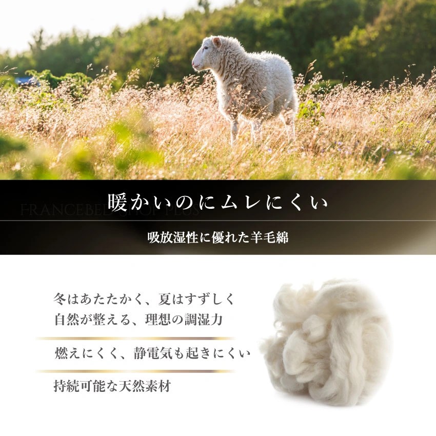吸湿性と保温性に優れた羊毛入り
