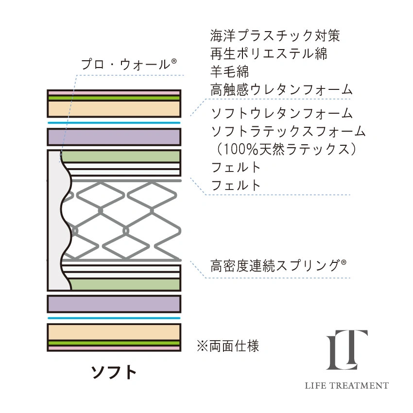 価格 ¥330,000~ ¥286,000~ ¥242,000~ ¥198,000~ 厚さ 32cm 30cm 28cm 26cm 寝心地 硬め/柔らかめ 硬め/柔らかめ 硬め/柔らかめ 硬め/柔らかめ 共通仕様 スプリング 高密度連続スプリング® 高密度連続スプリング® 高密度連続スプリング® 高密度連続スプリング® キルト ジャンプキルト(ホシガタ) ジャンプキルト(スラッシュ) ジャンプキルト(スラッシュ) ジャンプキルト(スラッシュ) 除菌機能 ○ ○ ○ ○ プロ・ウォール® ○ ○ ○ ○ 羊毛綿 ○ ○ ○ ○ 海洋プラスチック対策