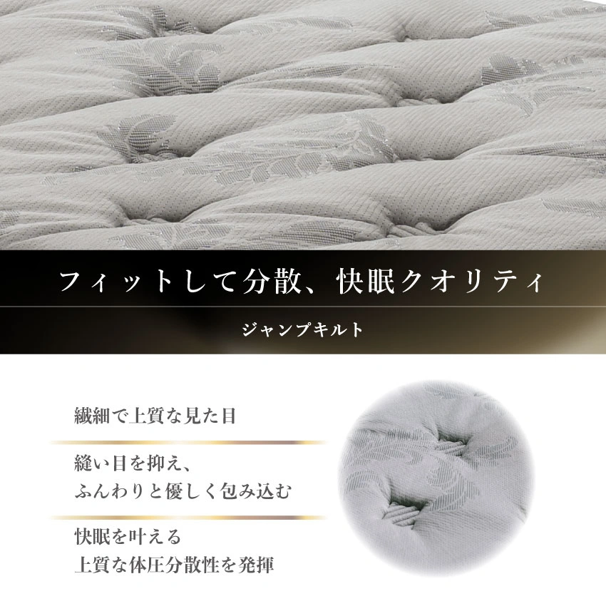 繊細に配置されたキルティング模様と、縫い留めを最小限に抑えた構造により、ふっくらとした上質なボリューム感を実現。身体をやさしく包み込み、体圧分散性を高めることで、より快適な寝心地を提供します。