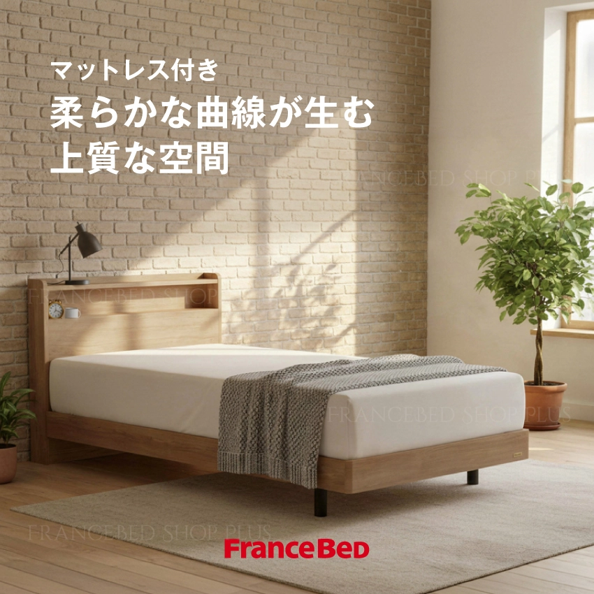 上品なグレージュが寝室にやさしく溶け込む、フランスベッドのキャビネット付きベッド。どんな壁色・床色にも合わせやすいニュートラルカラーなので、北欧・ナチュラルインテリアにも相性抜群です。