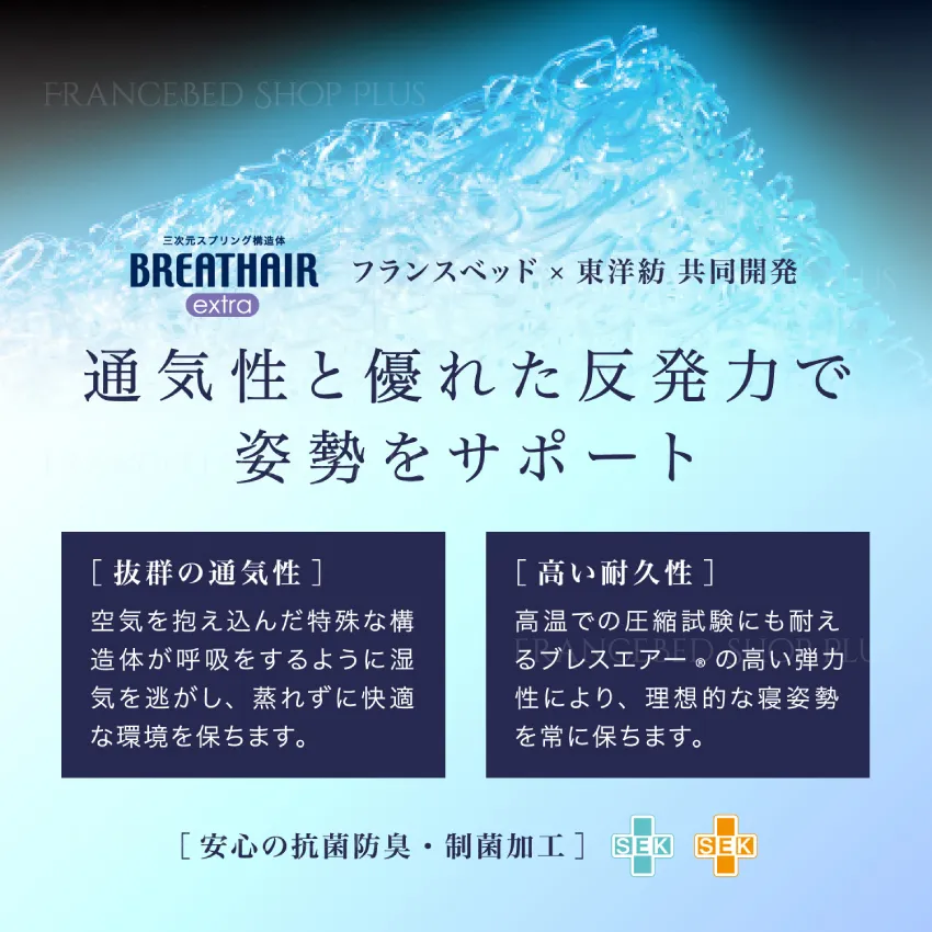 高温多湿な日本の環境に適した設計で、国内で唯一フランスベッドだけが生産しています。