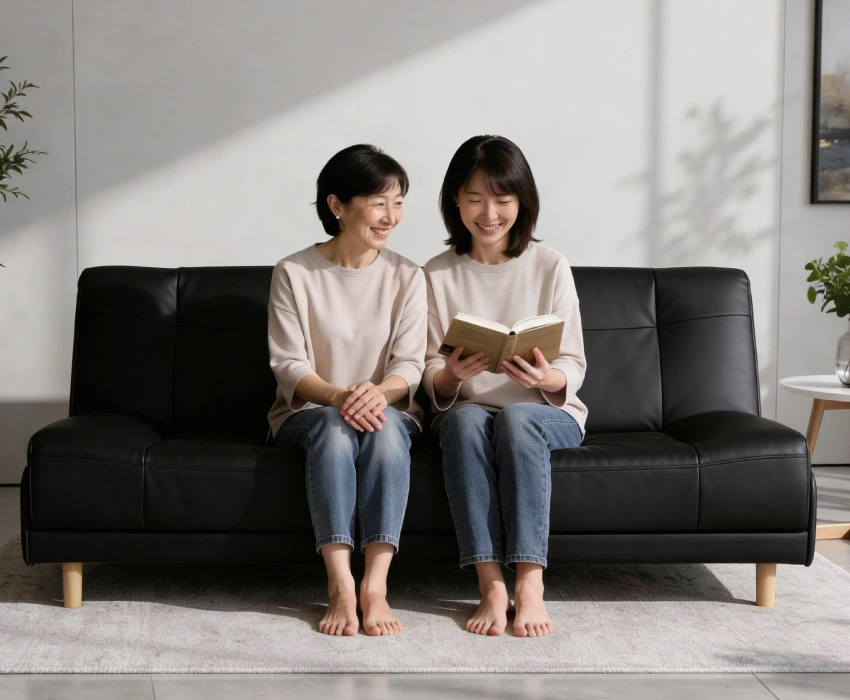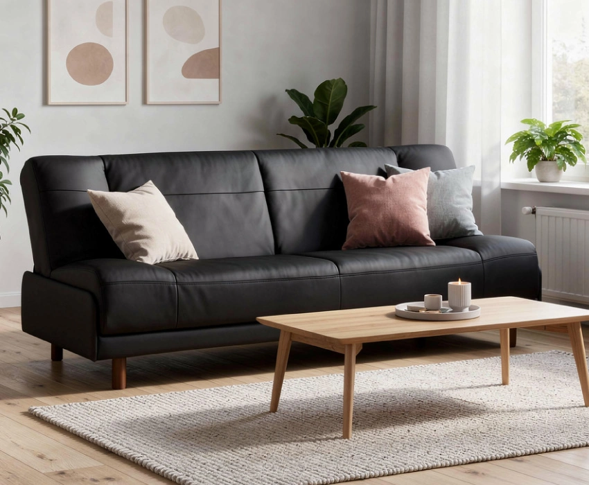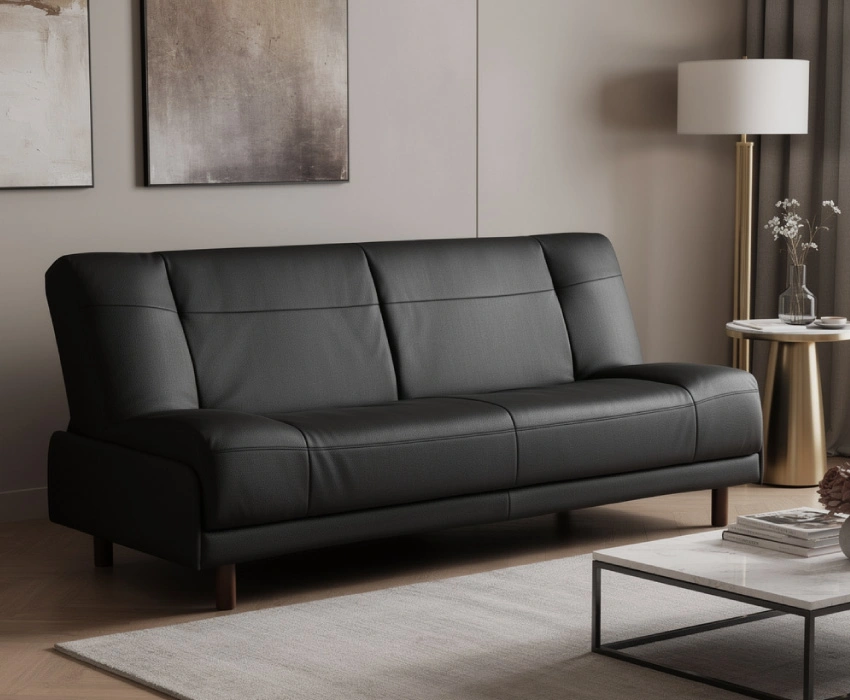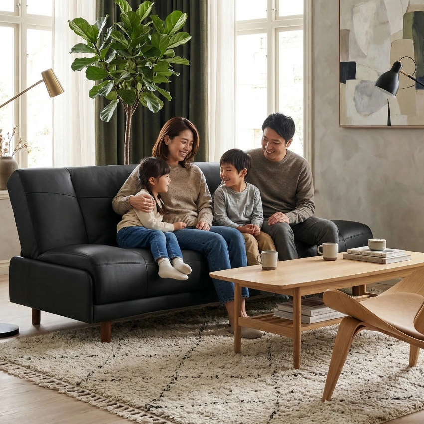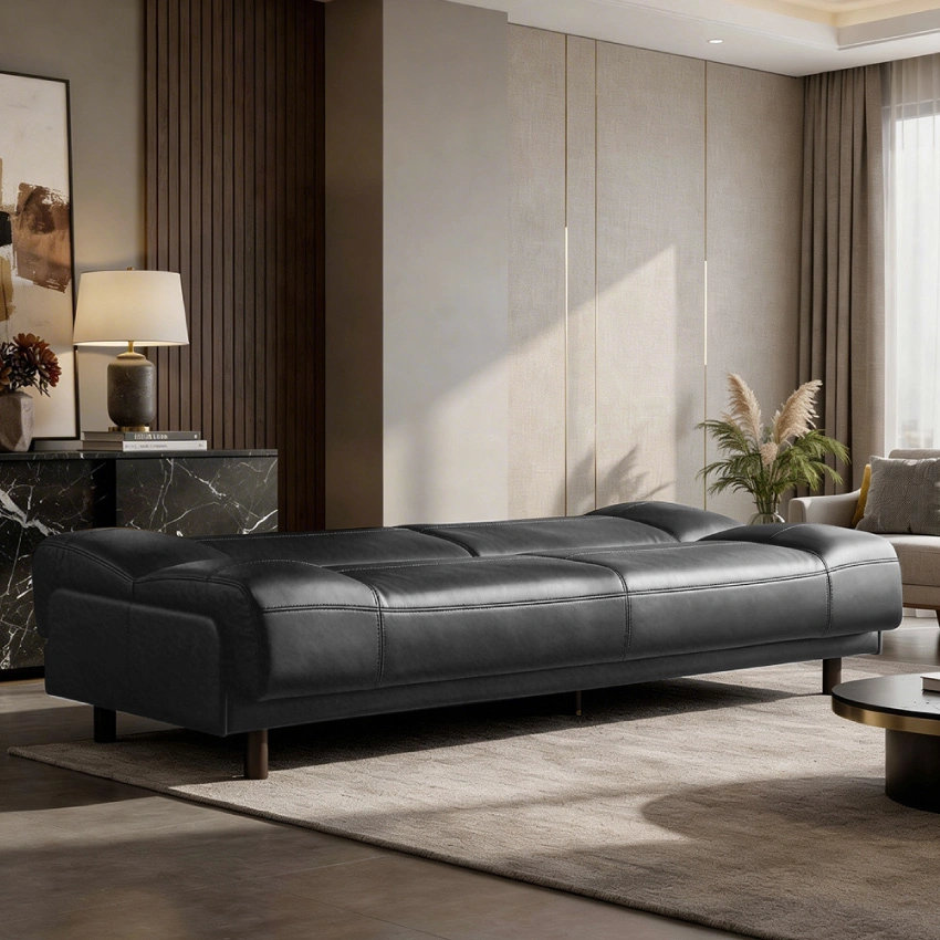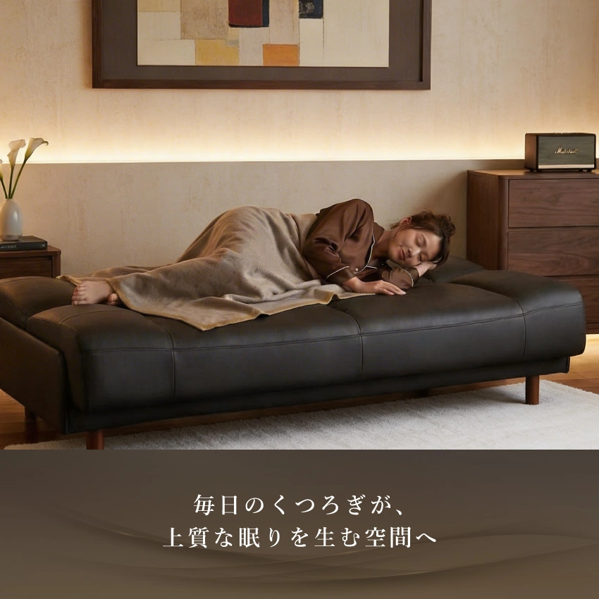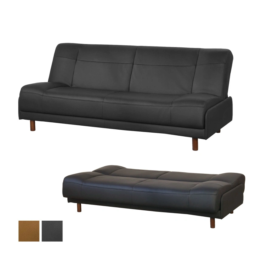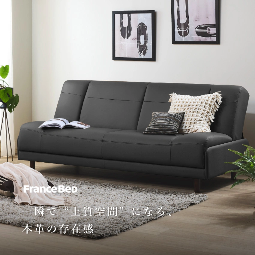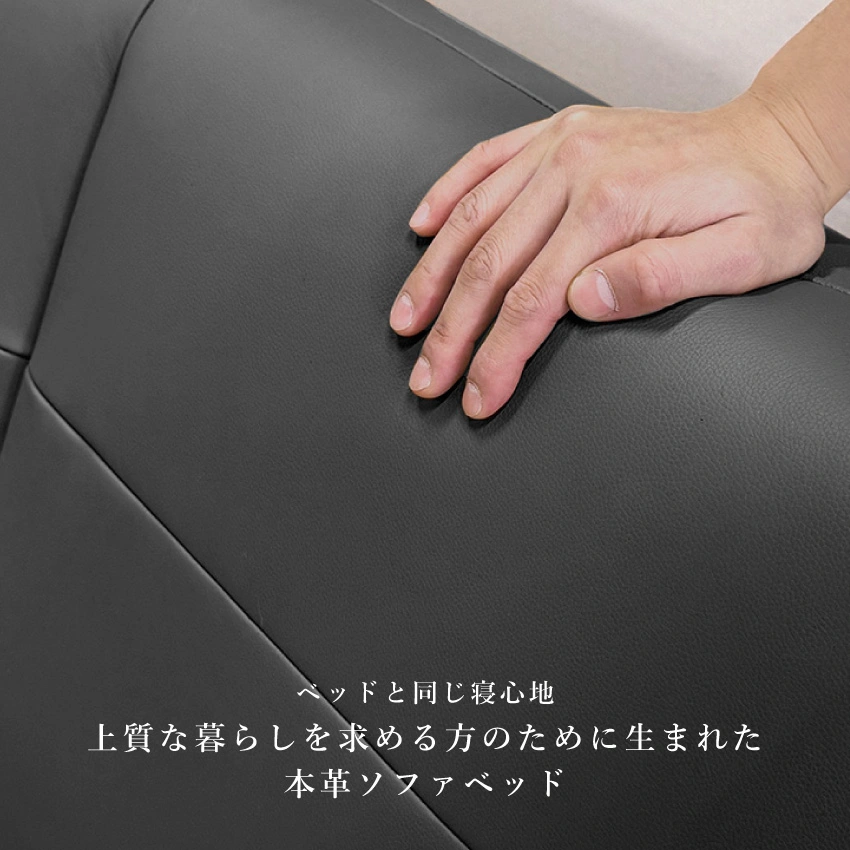バレン リビングに映える本革ソファベッド 高級レザー仕上げ 選べる木脚 ブラック×ウェンジ