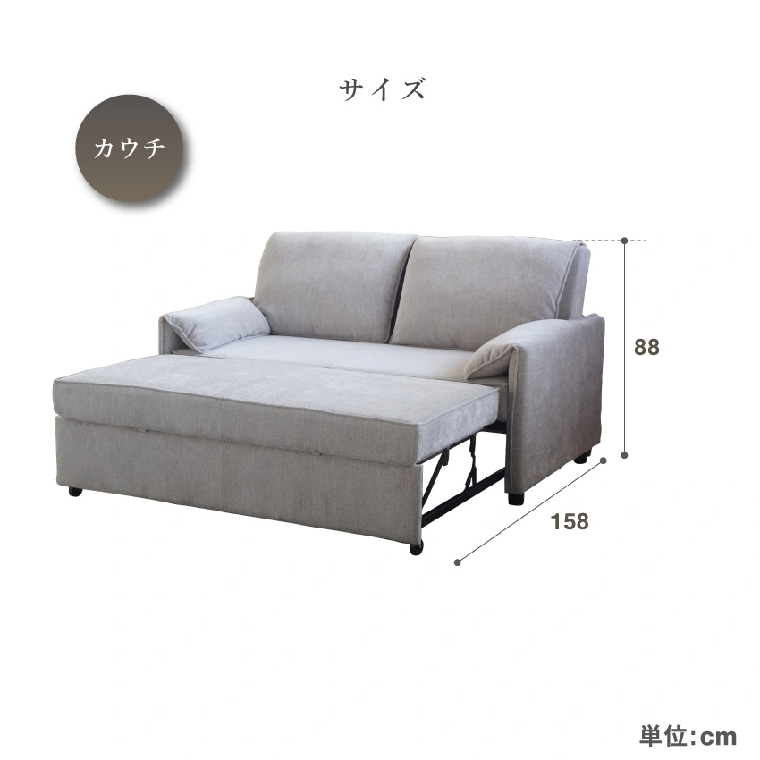 ソファ、カウチ、ベッドを別々に揃える必要はありません。この1台で、空間もコストもコンパクトに。