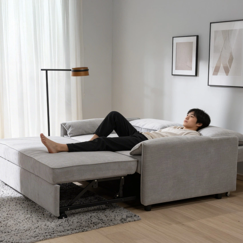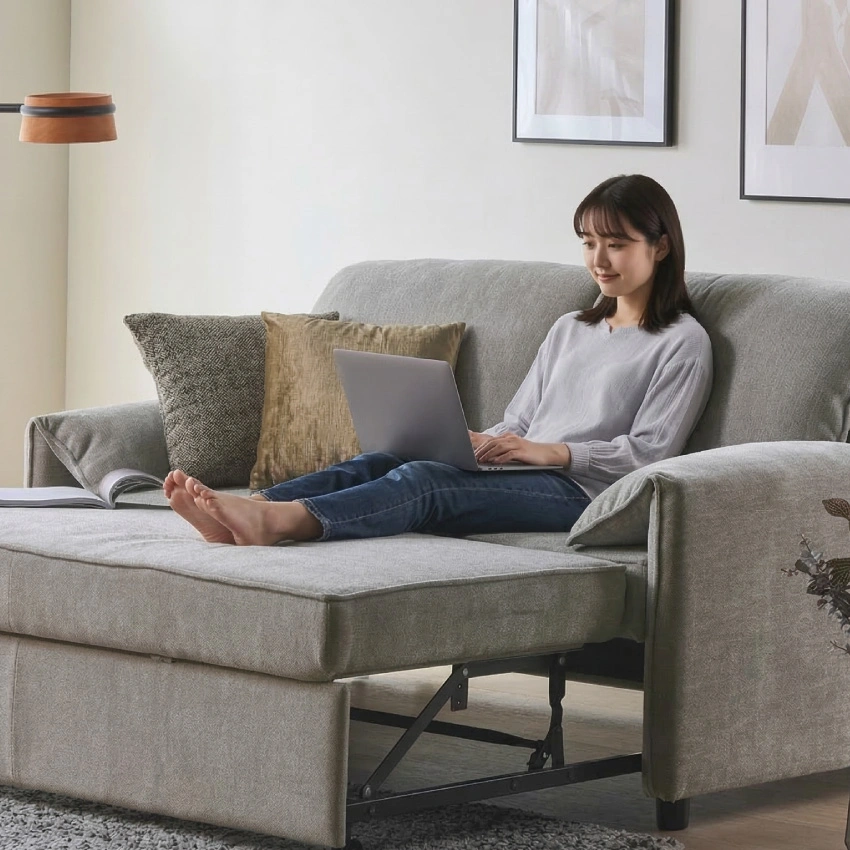 力に自信がない方でもスムーズにベッドへ変身。毎日のくつろぎも、急な来客対応にもシーンに合わせてちょうどいい形に。
