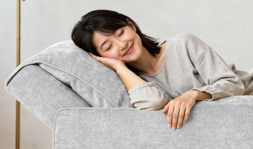 背もたれは4段階のリクライニング機能付き。読書をしたいとき、ゆったり映画を観たいとき、少し横になりたいときなど、あなたのその日の気分や過ごし方に合わせて、心地よい角度に細かく調整できます。座るたびに「ちょうどいい」と感じられる姿勢をつくれるので、長時間でも無理なくリラックス。自分に合った最適な角度を選べるから、日常のくつろぎ時間がさらに上質になります。