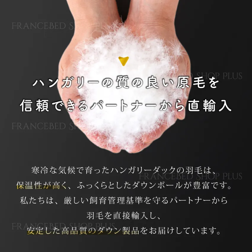稀少なハンガリー産のダックダウンを90%使用しています。