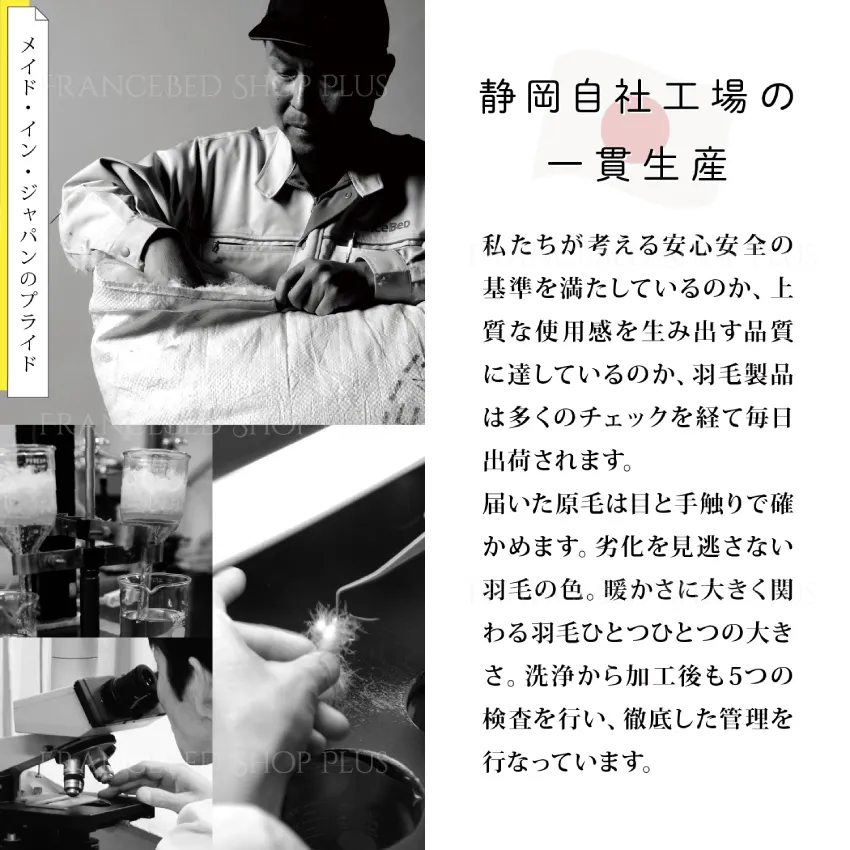フランスベッドの羽毛は、最高水準の95%までを実現しました。