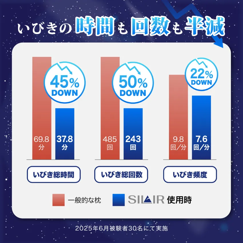 静音×高精度センサーで問題にアプローチし、いびきの時間も回数も半減。