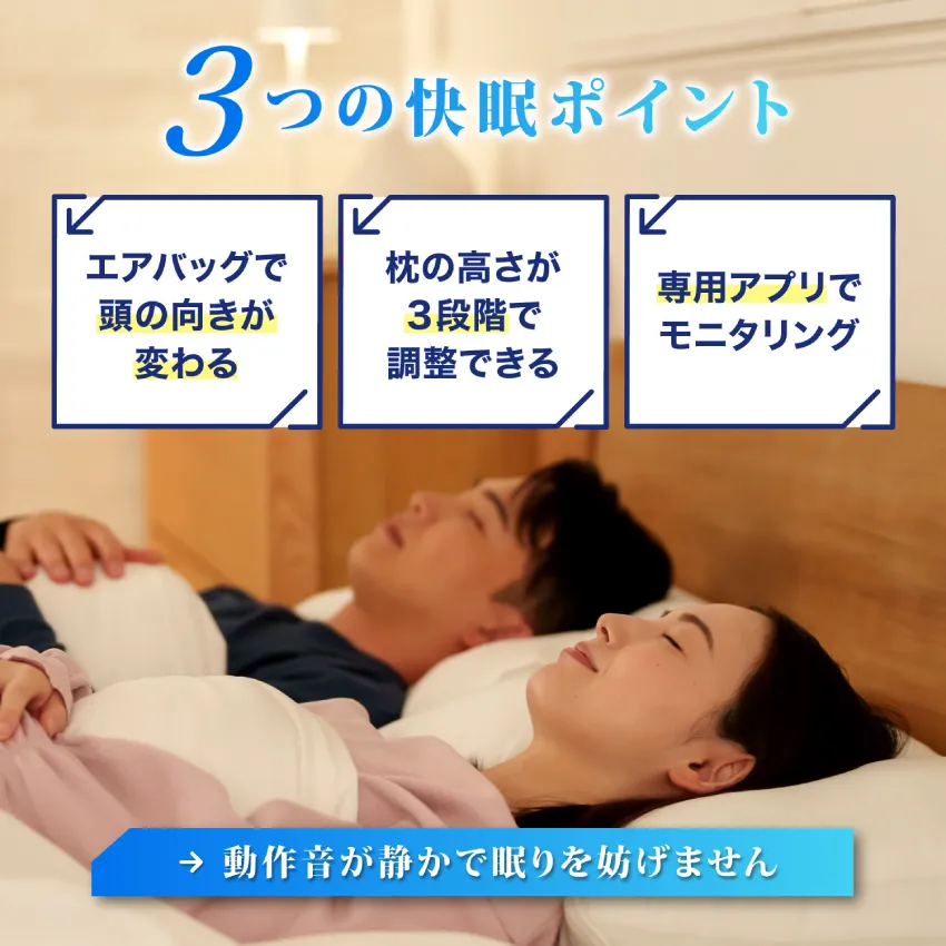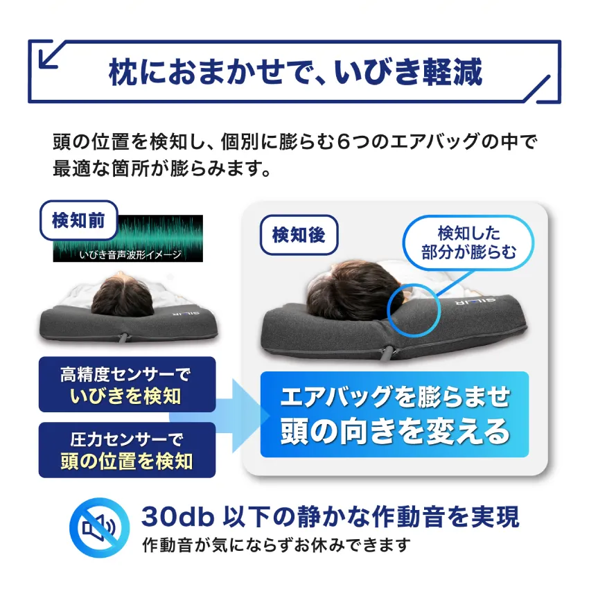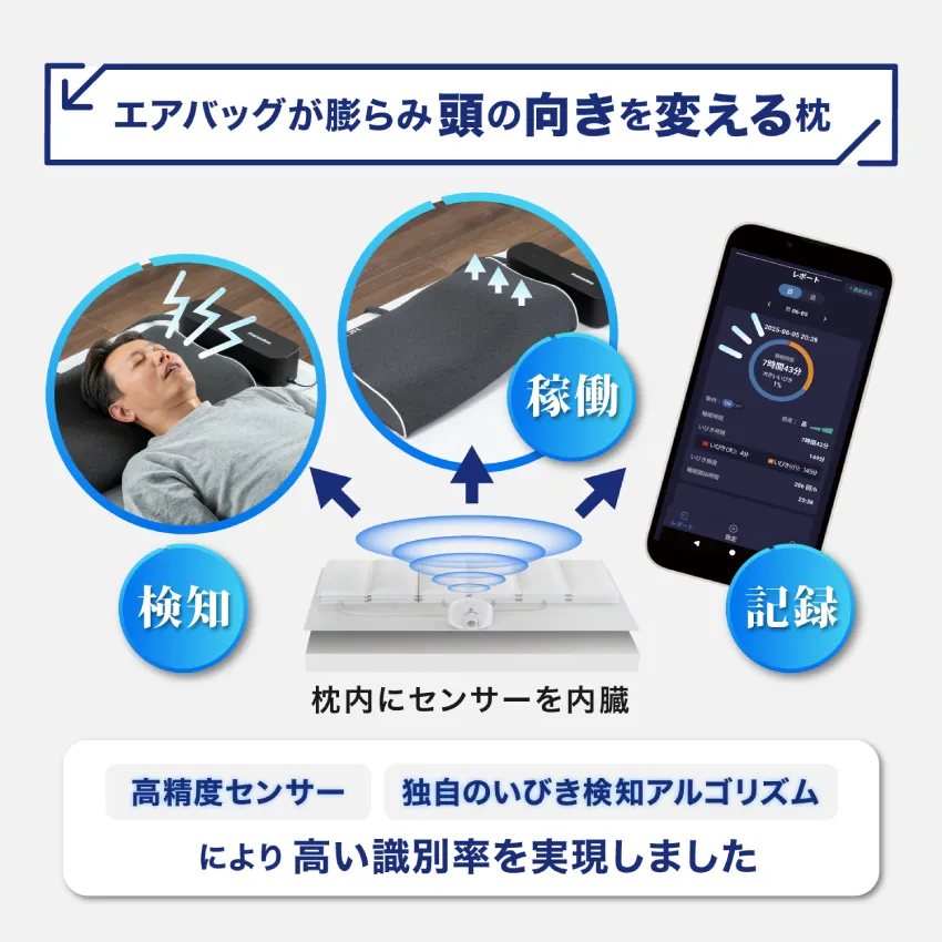 いびきを検知し静かにエアバッグが膨らむ設計