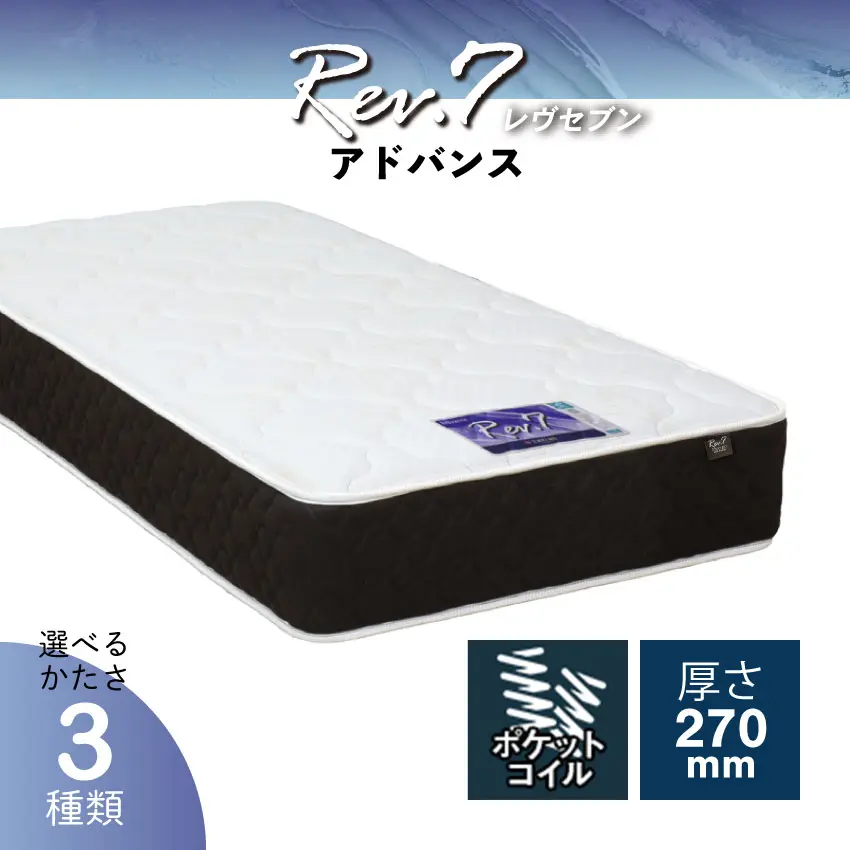 サイズ 幅970×長さ1950×厚さ270mm 重量 24.9kg スプリング ポケットスプリング(並行配列) 線径 1.7mm スプリング数 648個 生地 ニット布地(ポリエステル100%) 備考 - 両面仕様