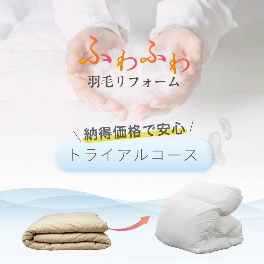 - ◆羽毛布団の状態により打ち直しができない場合がございます。その際は、ご返金にて対応とさせていただきます。(工場から返品する送料のみお客様ご負担)