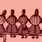 リトルミイにはたくさんのきょうだいがいます。他のきょうだいは背中を向けて座っていますが、リトルミイだけはこちらを見てくれています。