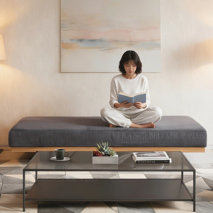 寝っ転がって、脚を伸ばしてリラックス。クッションがない分、広々お過ごしいただけます。