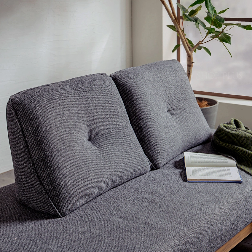 背もたれのない開放的で自由なデザイン。落ち着いた人気のグレー色は、モダンにもナチュラルにも、空間を選ばない万能カラーです。温かな木枠を使用し、引き締めるスタイリッシュなブラック脚を採用。こだわりの素材を取り入れています。