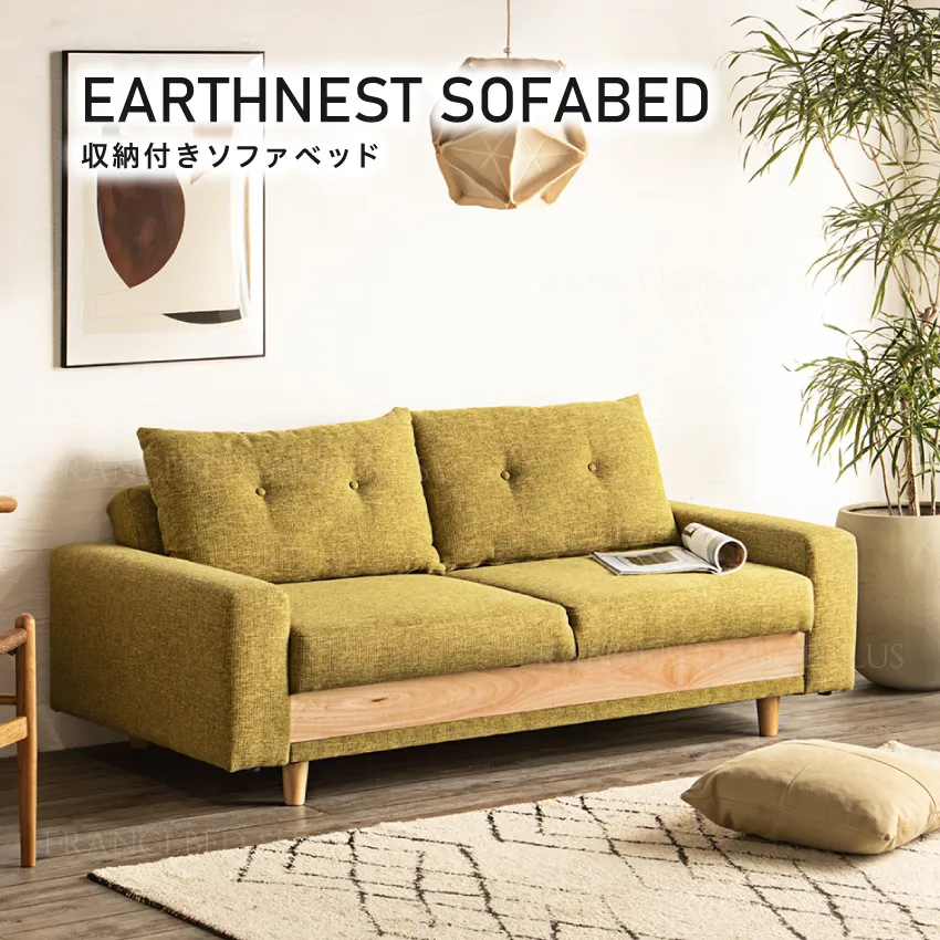 自然をイメージさせるアースカラーのソファベッドは、観葉植物の相性とも抜群。優しい色合いに癒されます。