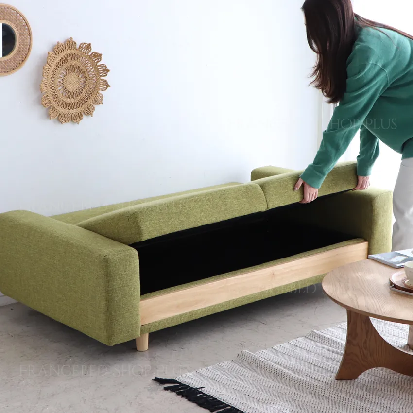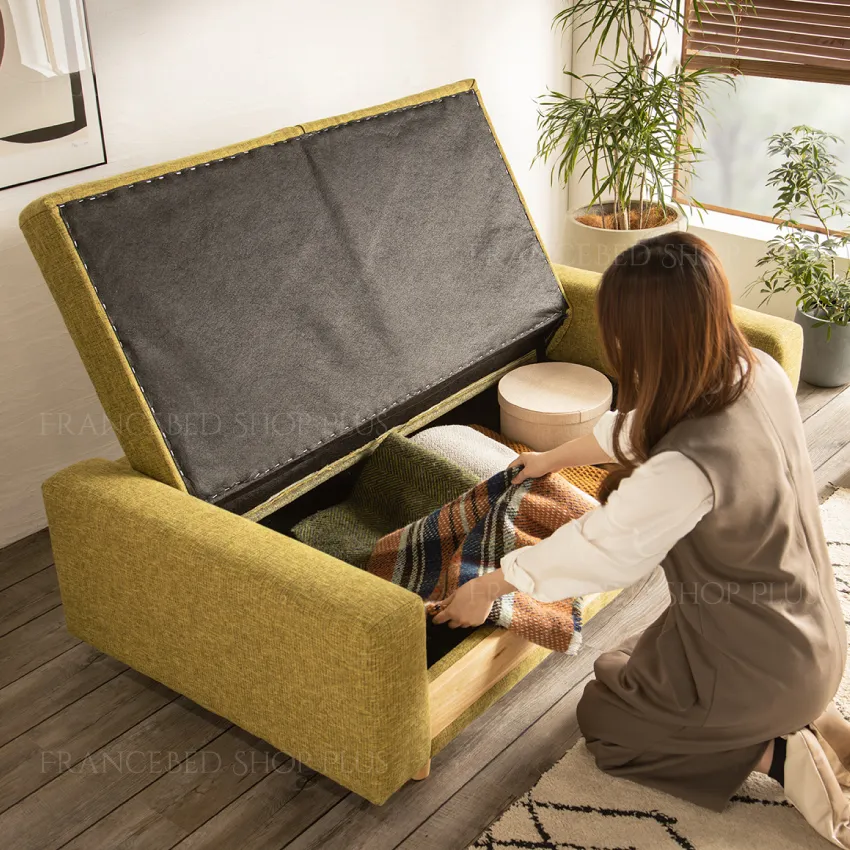 座面下にはたっぷり収納スペースを確保。ブランケットやクッション、季節のアイテムまで、見せたくないものをすっきり隠せて、お部屋が整います。