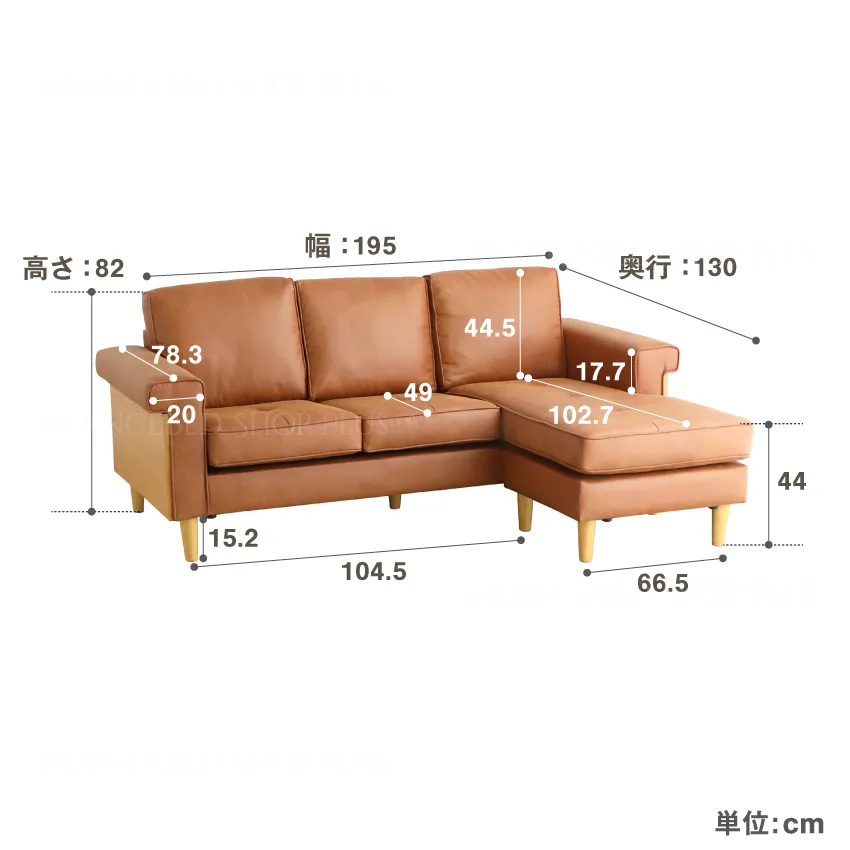 サイズ 幅195×奥行130×高さ82cm 座面までの高さ 44cm 脚の高さ 15.2cm 張地 ポリエステル 芯材 - ウレタン