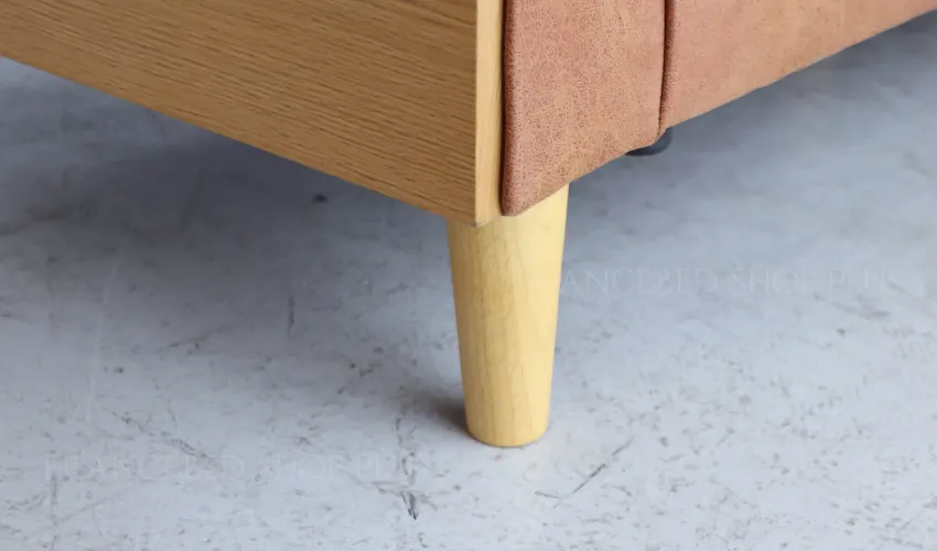 お掃除ラクラク 脚も側板に合わせ、木脚でおつくりしています。脚の高さは15.2cmとなっており、お掃除ロボットやフロアワイパーがスムーズに通過できるように設計されているため、ほこりの溜まりやすいソファベッド下もお掃除が簡単!日々のお手入れで綺麗な状態を保つことができます。