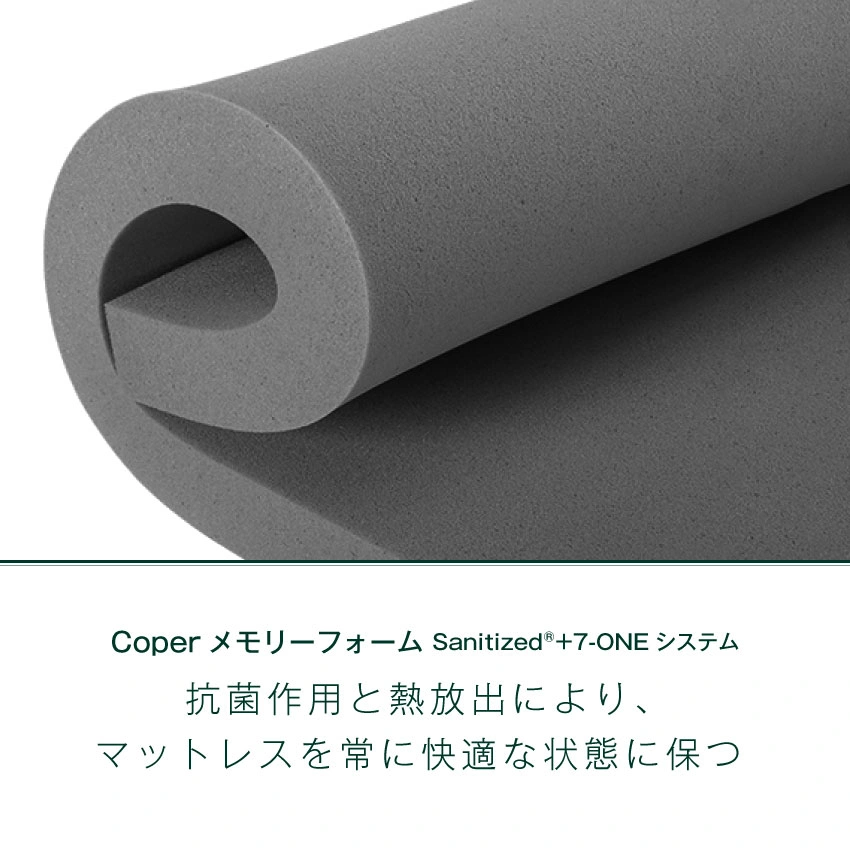 copperメモリーフォームは、体圧分散に優れた高機能フォームで、睡眠中の体をやさしく支えます。Sanitized加工により、抗菌・防臭効果をプラスし、清潔で快適な寝環境をキープ。柔軟性と耐久性を兼ね備え、長時間の使用でもへたりにくく、心地よいフィット感が続きます。