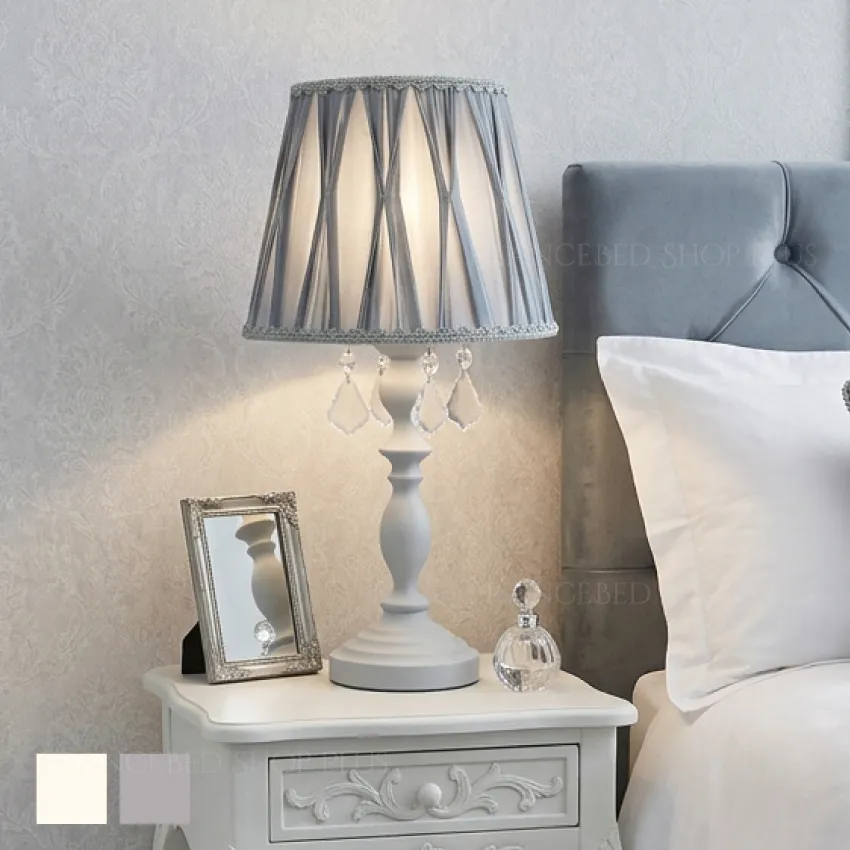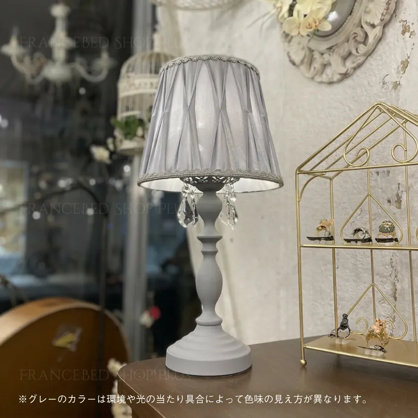繊細なレースと、きらめくクリスタルガラス。まるでヨーロッパのアンティークサロンに佇むような、上品で優雅なテーブルランプです。