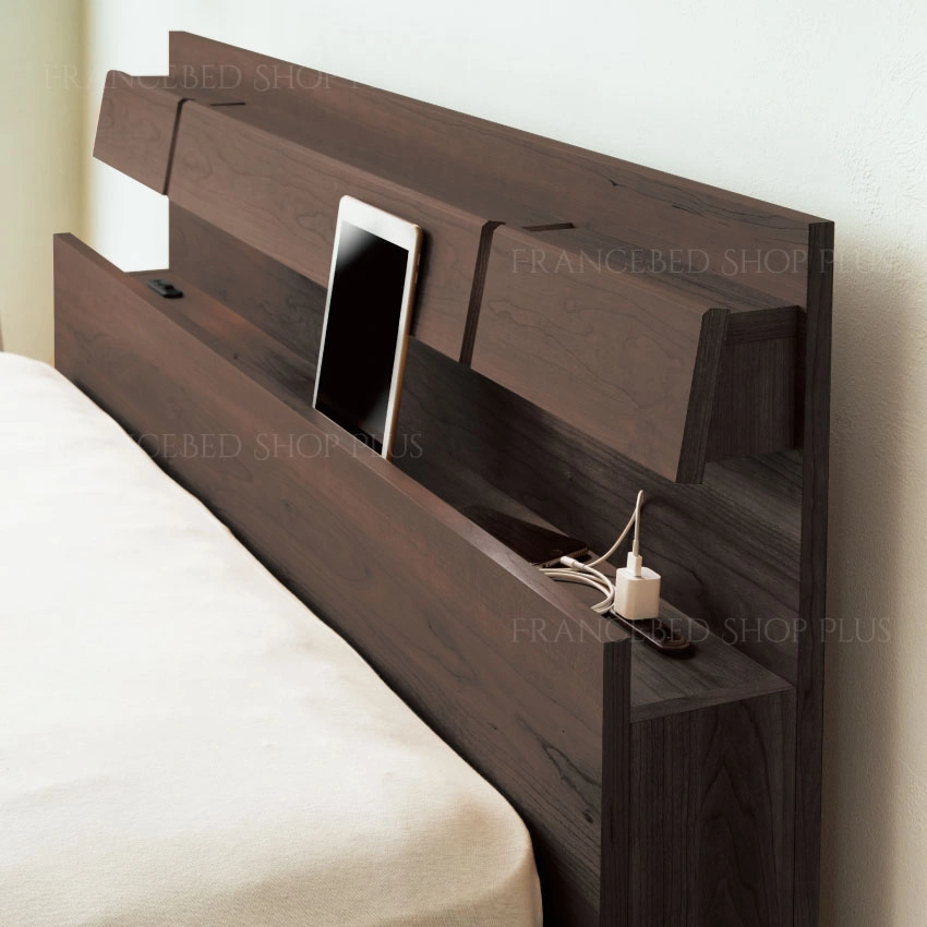 ヘッドボードには、雑誌やスマートフォン、タブレットを立てて置けるキャビネットを備えています。 縦に入ったスリットから柔らかく広がるLED間接照明が、寝室を落ち着いた雰囲気に演出。就寝前の読書や、夜間の足元灯としても心地よくお使いいただけます。新築・新居・リフォーム・マイホーム・新生活の方にもおすすめです!
