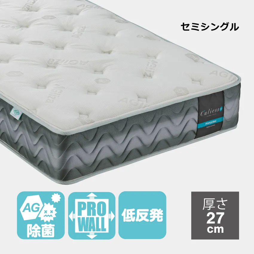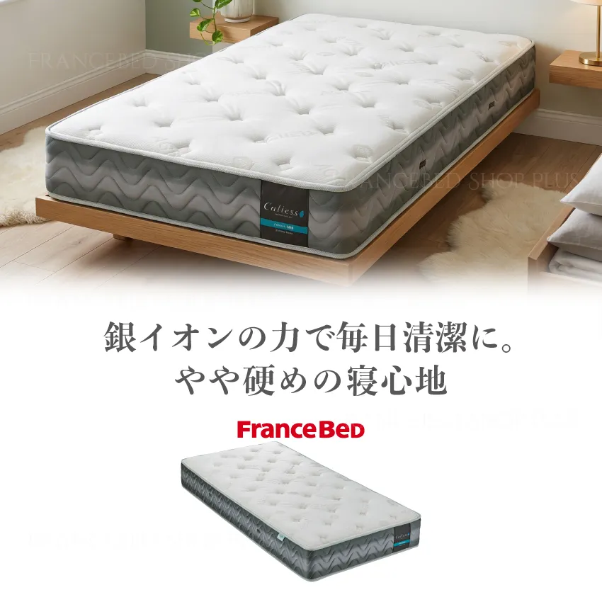 フランスベッド独自の高密度連続スプリングと除菌機能糸「キュリエス・エージー®」採用。硬めな感触のベーシックマットレス。