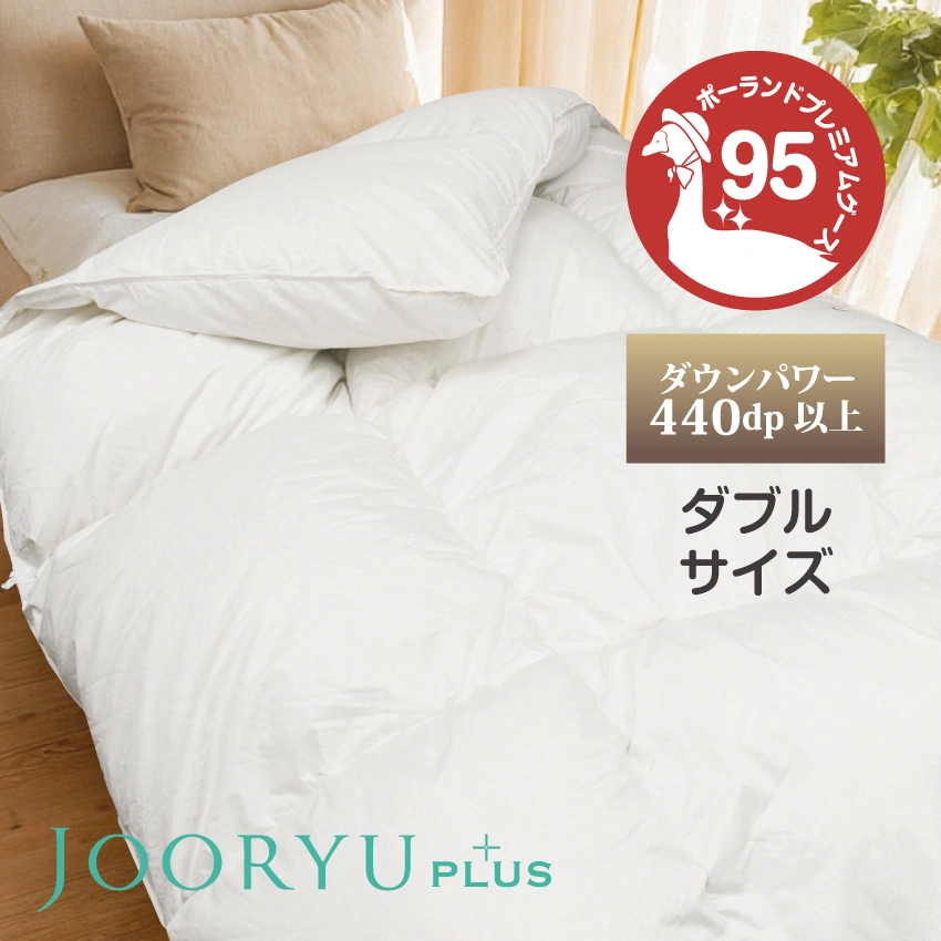 ポーランド産の高品質なポーランド産プレミアムグースダウン95%使用したJOORYU仕様を超えた羽毛布団。フランスベッドの独自技術の、ダウンパワーを最大限に活かすパワードームキルト採用。1枚でも驚くほどの暖かさです。
