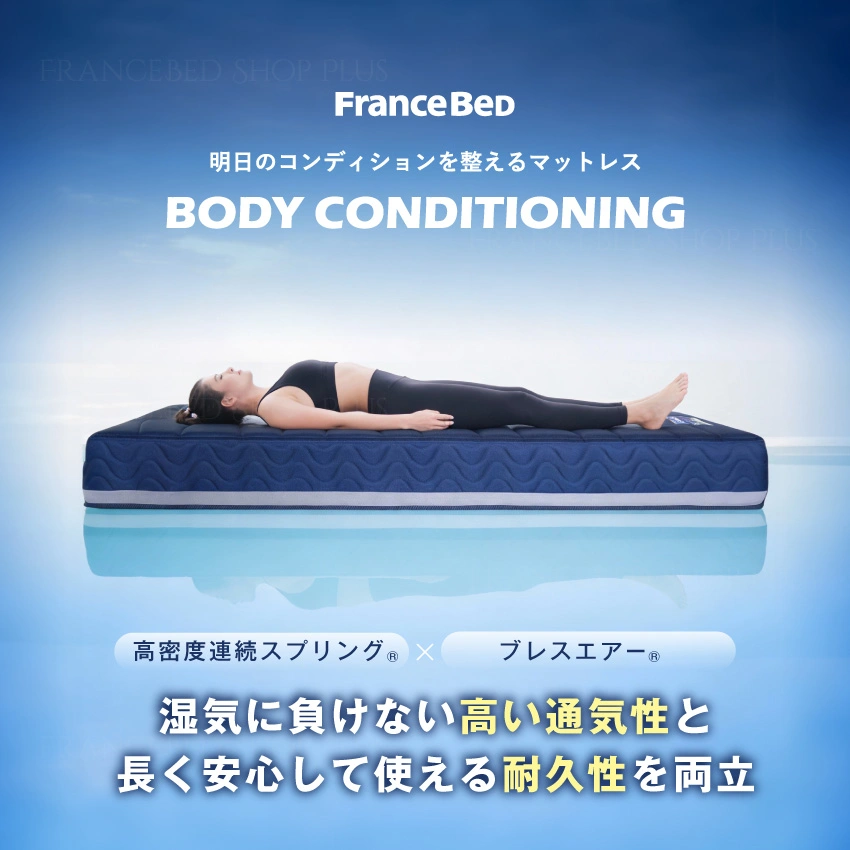 フランスベッドのボディコンディショニングマットレスは、睡眠中に身体のバランスを整え、快適な寝姿勢をサポートする高機能マットレスです。